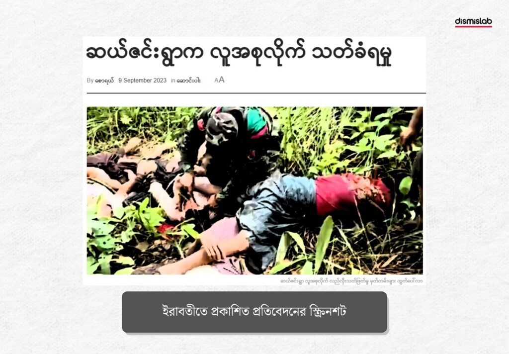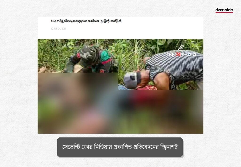 ঘটনাটি বাংলাদেশের কি না তা যাচাইয়ের জন্য ভিডিওটির কিফ্রেম ধরে অনলাইনে সার্চ করলে মিয়ানমারের বিভিন্ন গণমাধ্যমে প্রকাশিত একাধিক প্রতিবেদন পাওয়া যায়। প্রতিবেদনে যুক্ত ছবির সঙ্গে বাংলাদেশের পার্বত্য অঞ্চলের বা মিয়ানমারের আরাকানের দাবিতে ছড়িয়ে পড়া ভিডিওটির ফুটেজে হুবহু মিল পাওয়া যায়। দ্যা সেভেন্টি ফোর মিডিয়া নামে মিয়ানমারের কাচিন রাজ্য ভিত্তিক সংবাদ সংস্থার ২০২৩ সালের ২৪ জুলাই প্রকাশিত প্রতিবেদনে এই হত্যাকাণ্ডের উল্লেখ পাওয়া যায়। সেখানে বলা হয়েছে, এই ঘটনা ঘটেছিল মিয়ানমারের কাচিন রাজ্যে। ভিডিওতে সামরিক পোশাক পরিহিত ব্যক্তির হাতে সান্নি ন্যাশনালিটিজ আর্মির (এসএনএ) আর্মব্যান্ড আছে বলেও উল্লেখ করা হয়েছে সেভেন্টি ফোর মিডিয়ার প্রতিবেদনে। এ থেকে বোঝা যায়, হত্যাকরী ব্যক্তিরা এসএনএ-এর সদস্য, আরাকান আর্মি নয়।