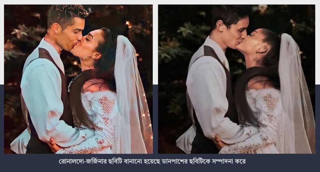 মূলত মার্কিন গায়িকা এরিয়ানা গ্রান্ডের সাথে রিয়েল এস্টেট ব্যবসায়ী ডাল্টন গোমেজের ২১ সালের বিয়ের ছবিকে এডিট করে সম্প্রতি রোনালদোর বিয়ের বলে দাবি করা হচ্ছে।