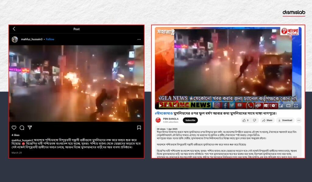 একই ভিডিও আবার ভারতের সামাজিক মাধ্যমে ছড়িয়েছে ভিন্ন দাবিতে। সেখানে বলা হয়েছে পশ্চিমবঙ্গের মালদহের মোথাবাড়িতে মুসলমানরা হিন্দুদের দোকানপাট ভাংচুর করেছে এবং যানবাহনে আগুন দিয়েছে। এ নিয়ে ফ্যাক্টচেক প্রতিবেদন প্রকাশ করেছে ভারতীয় তথ্যযাচাইকারী সংস্থা ফ্যাক্ট ক্রেসেন্ডো এবং সংবাদ মাধ্যম আজতাক বাংলা।