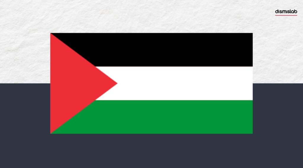 ফিলিস্তিনের আসল পতাকা তিন রঙের অনুভূমিক সারি এবং এক পাশে, মাঝ বরাবর একটি ত্রিভুজ নিয়ে গঠিত। উপরে কালো, মাঝখানে সাদা, নিচে সবুজ এবং বাঁ দিকে সেই লাল ত্রিভুজ।