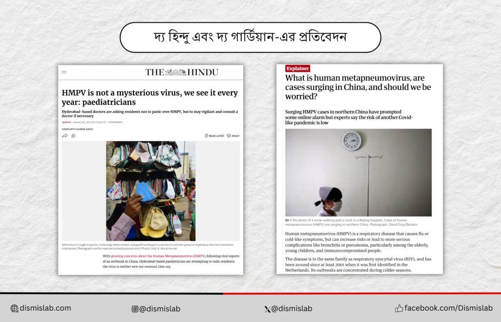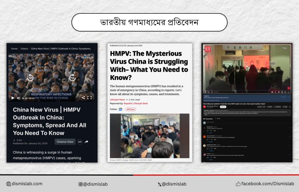 দ্য ইকোনমিক টাইমসের এক প্রতিবেদনে অন্য গণমাধ্যমের বরাতে বলা হয়, “হিউম্যান মেটানিউমোভাইরাস সহ অন্যান্য শ্বাসপ্রশ্বাসজনিত অসুস্থতা বৃদ্ধির ভেতর দিয়ে যাচ্ছে চীন। প্রতিবেদন এবং সামাজিক মাধ্যমের পোস্ট বলছে ভাইরাসটি দ্রুত ছড়িয়ে পড়ছে। হাসপাতাল এবং শ্মশান ভরে গিয়েছে বলেও দাবি করছে কেউ কেউ।” ওই গণমাধ্যমেরই এক ভিডিও প্রতিবেদনের শিরোনাম, “চীন কি নতুন মহামারিকে গোপন করছে? ‘কোভিডের মতো’ এইচএমপিভি ভাইরাস নতুন আতঙ্ক ছড়াচ্ছে, বিশৃঙ্খলা দেখা গেছে হাসপাতালগুলোতে।”