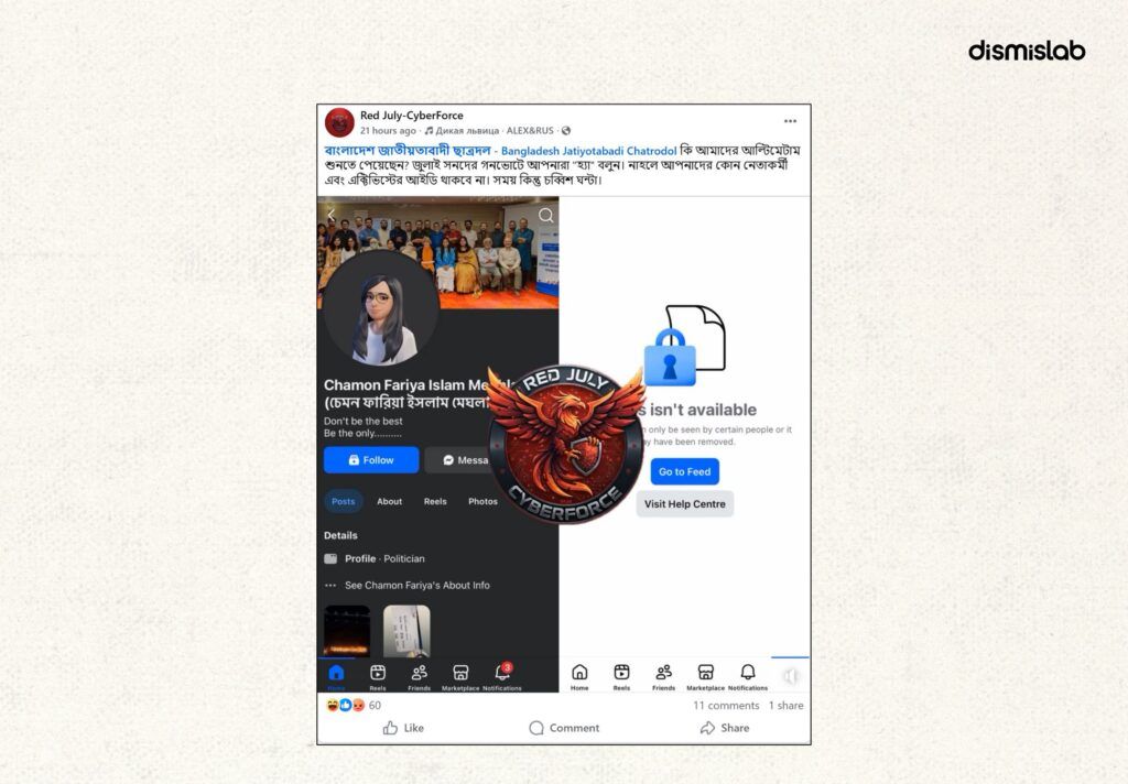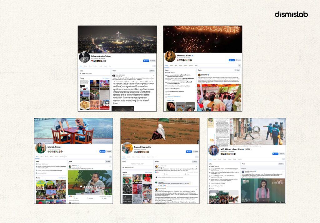 ডিসমিসল্যাব এরকম অন্তত পাঁচজনের আইডি যাচাই করে দেখতে পায় শনিবার (১ নভেম্বর) দুপুর ১২টা পর্যন্ত আইডিগুলো নিষ্ক্রিয় ছিল। যাদের আইডি এসময় নিষ্ক্রিয় পাওয়া গেছে, তারা হলেন- লেখক ও অ্যাক্টিভিস্ট ফাহাম আব্দুস সালাম, বিএনপির ভারপ্রাপ্ত চেয়ারম্যান তারেক রহমানের উপদেষ্টা মাহদী আমিন, কেন্দ্রীয় ছাত্রদলের যুগ্ম সাধারণ সম্পাদক মানসুরা আলম, ঢাকা বিশ্ববিদ্যালয়ের কেন্দ্রীয় ছাত্রদলের যুগ্ম সাধারণ সম্পাদক আবিদুল ইসলাম খান এবং অ্যাক্টিভিস্ট রাসেল হিমাদ্রির।