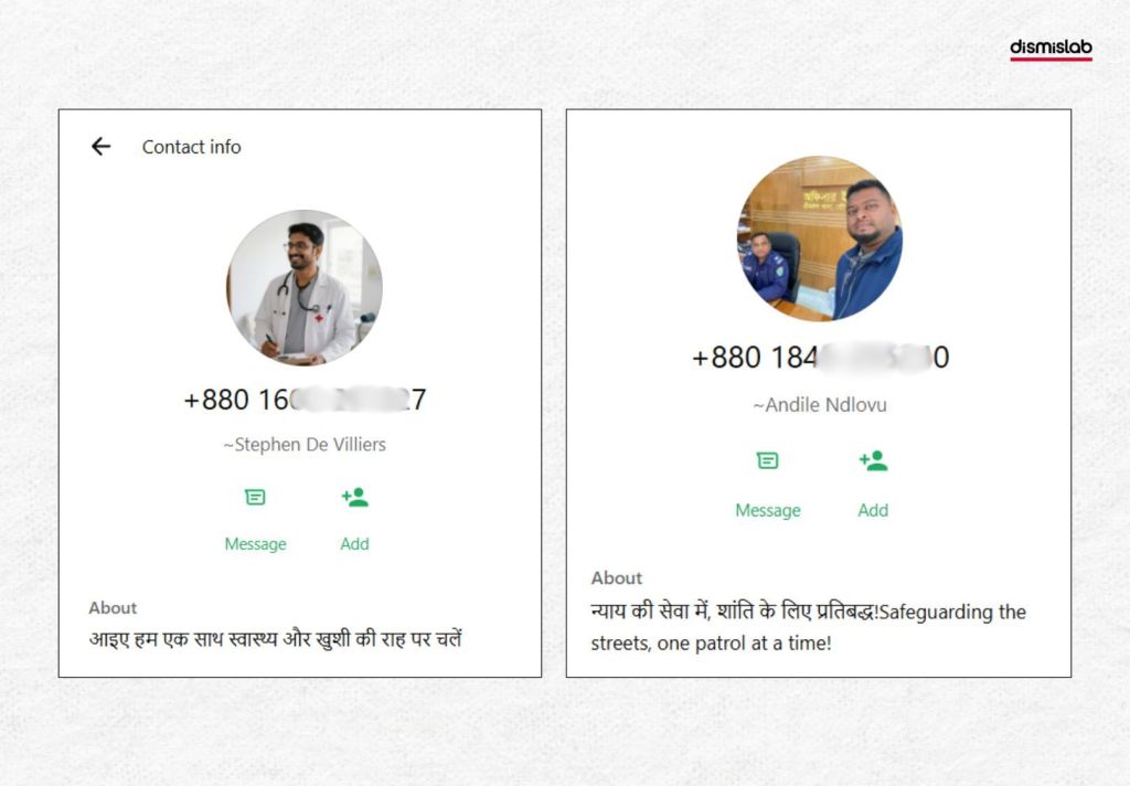 এই ব্যক্তি, ডিসমিসল্যাবের নজরে থাকা চারটি গ্রুপে প্রায় একই সময় এসেছিলেন, এবং প্রত্যেক গ্রুপে তার নাম এক হলেও ফোন নম্বর আলাদা ছিল। ডিসমিসল্যাবের পক্ষ থেকে তার নাম যুক্ত প্রত্যেকটি নম্বরেই সরাসরি কল এবং হোয়াটসঅ্যাপে কল করা হয়, কিন্তু কোনো সাড়া মেলেনি।